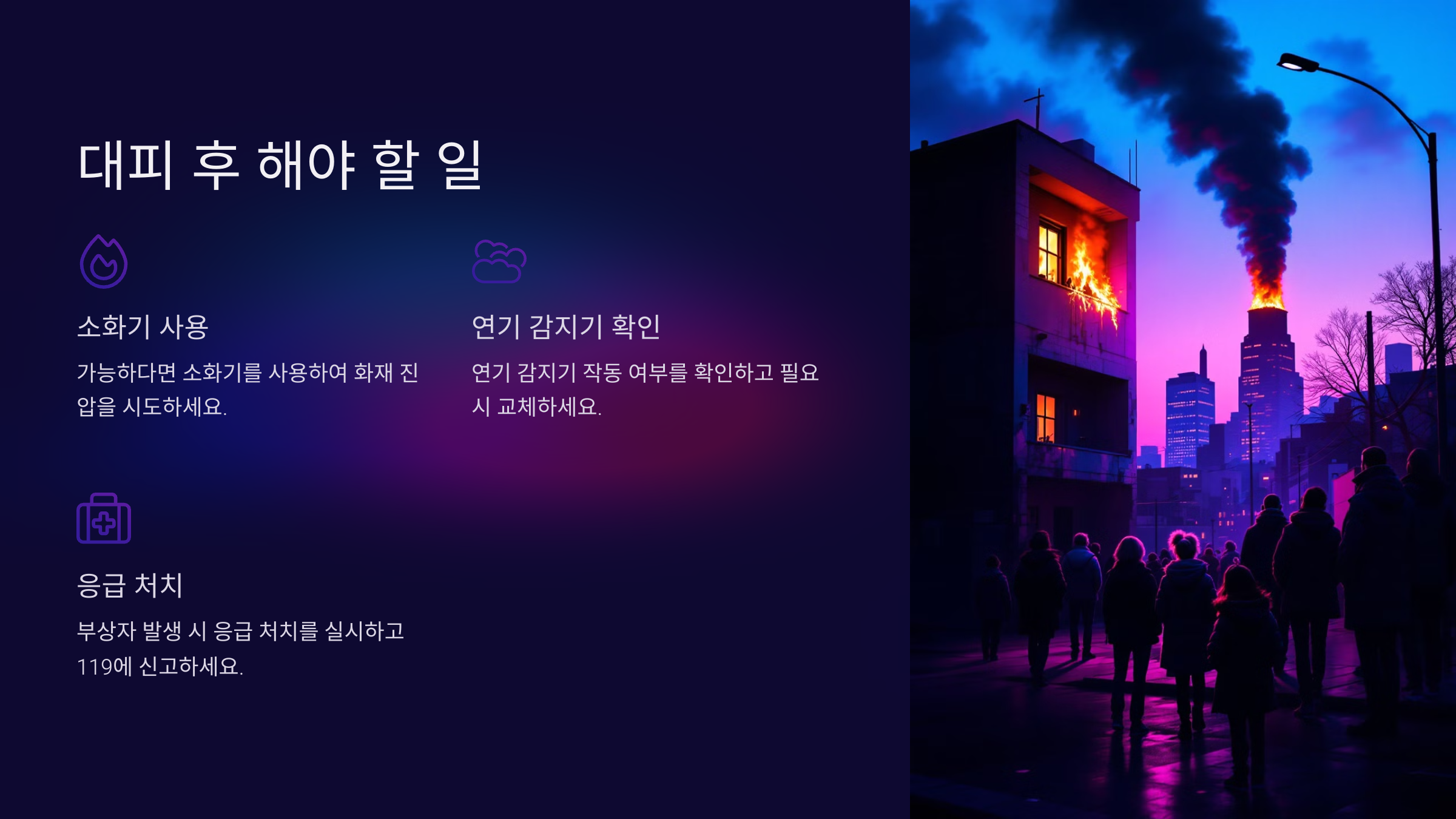 | 주택화재 초기 대응 방법과 119 신고 요령 (0) | 2025.01.10 |