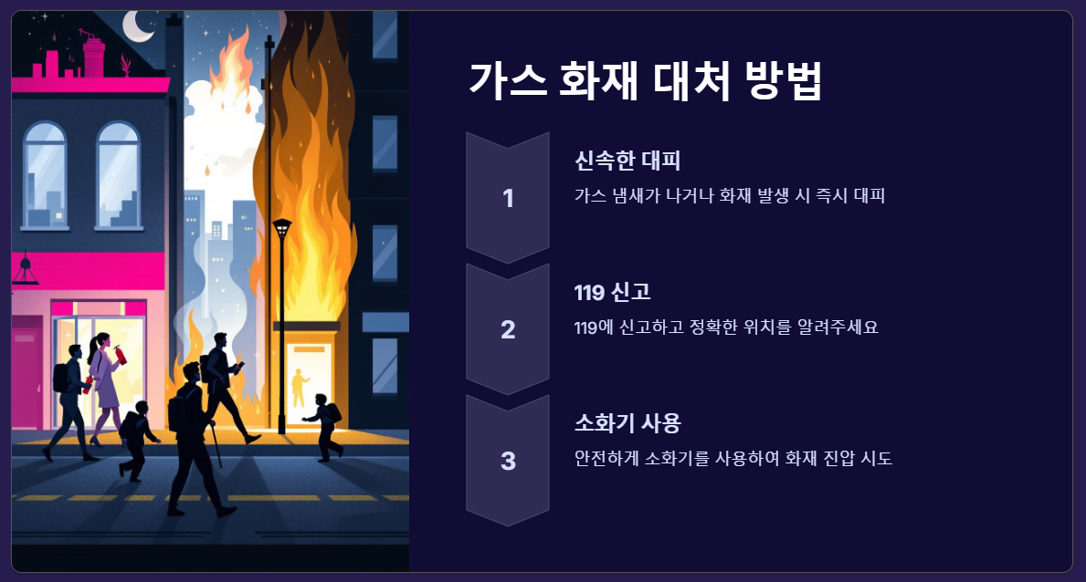 가스 화재는 일상생활에서 가장 빈번히 발생하는 화재 중 하나로, 작은 부주의로 큰 사고로 이어질 수 있어요. 특히 가스는 폭발 위험이 높아 초기 예방과 올바른 대처 방법을 반드시 알아야 해요.
