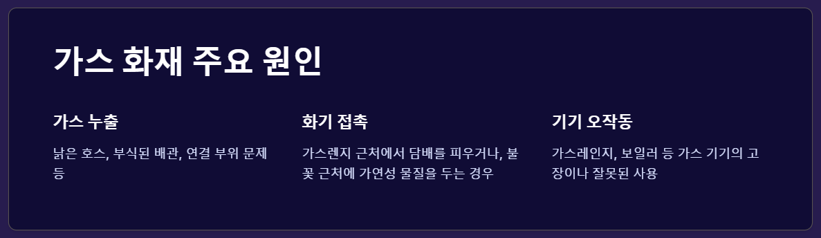 가스 화재는 주로 가스 누출 및 부주의로 발생하는 경우가 많아요. 아래는 주요 원인들입니다.