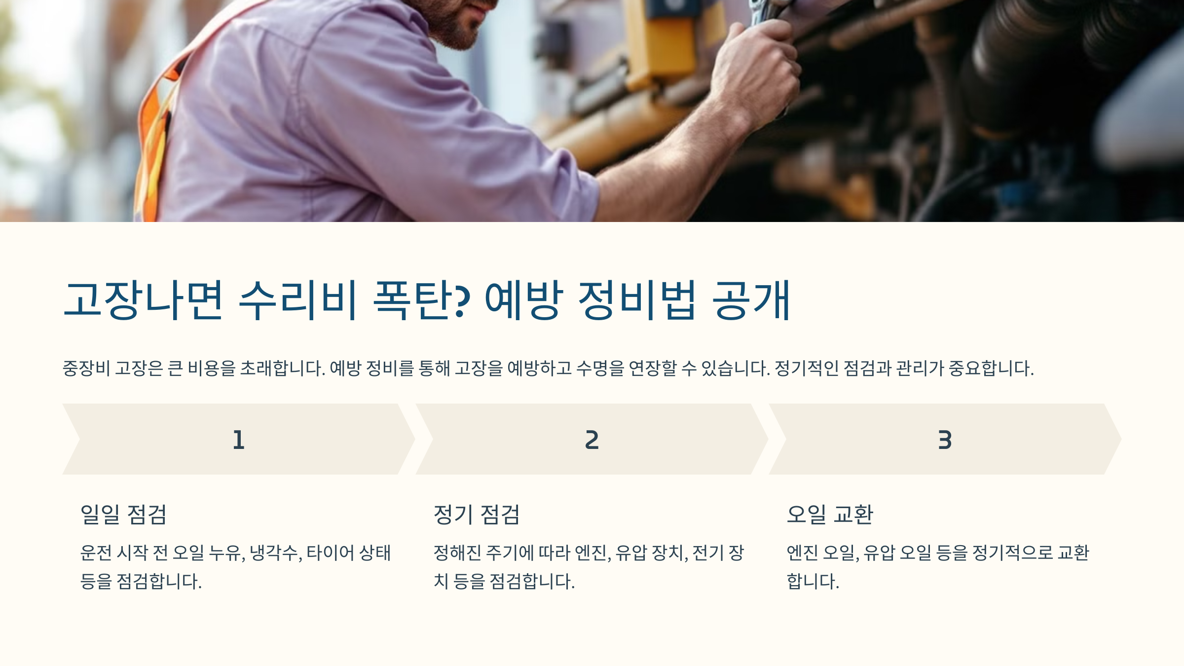 이렇게 예방 정비만 잘해도 고장 걱정을 줄이고, 장비 수명을 2배 늘릴 수 있어요! 🚜