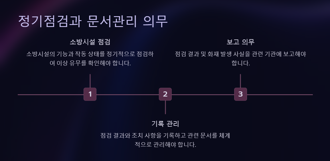 첫째, 소방시설의 정상 작동 여부를 정기적으로 점검하고 유지 관리해야 해요.