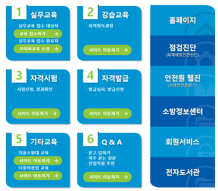 - 한국소방안전원, 한국소방시설협회 등에서 강습을 제공