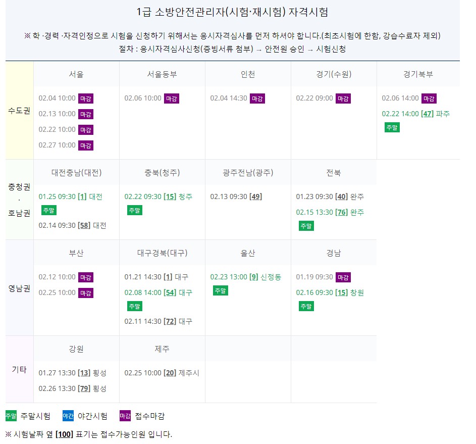 3. 소방안전관리자 1급 시험일정과 과목
