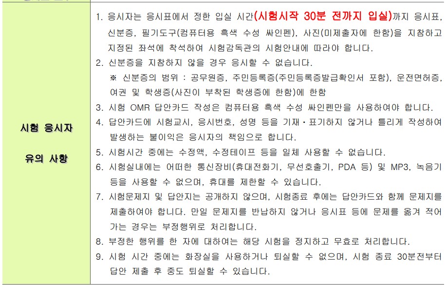 시험 응시자 유의 사항: