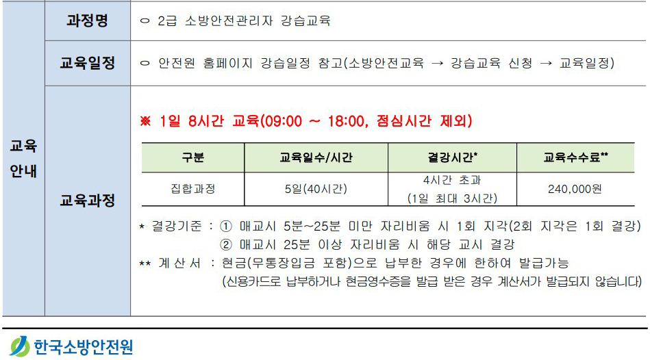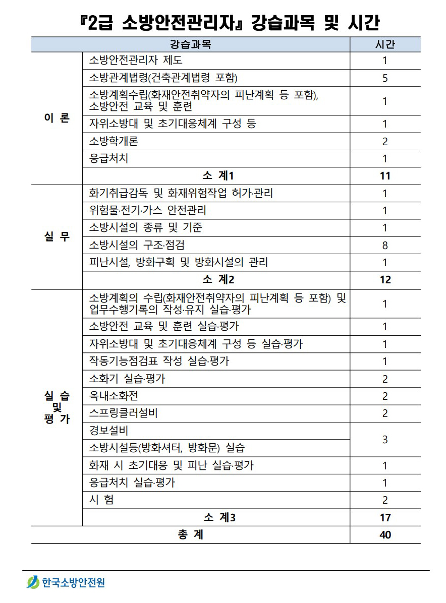 소방안전관리자 2급 필수 교육 과정과 이수 기준