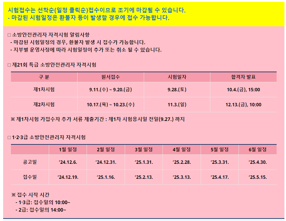 한국소방안전원 강습교육을 수료하면 누구나 시험을 치를 수 있습니다.