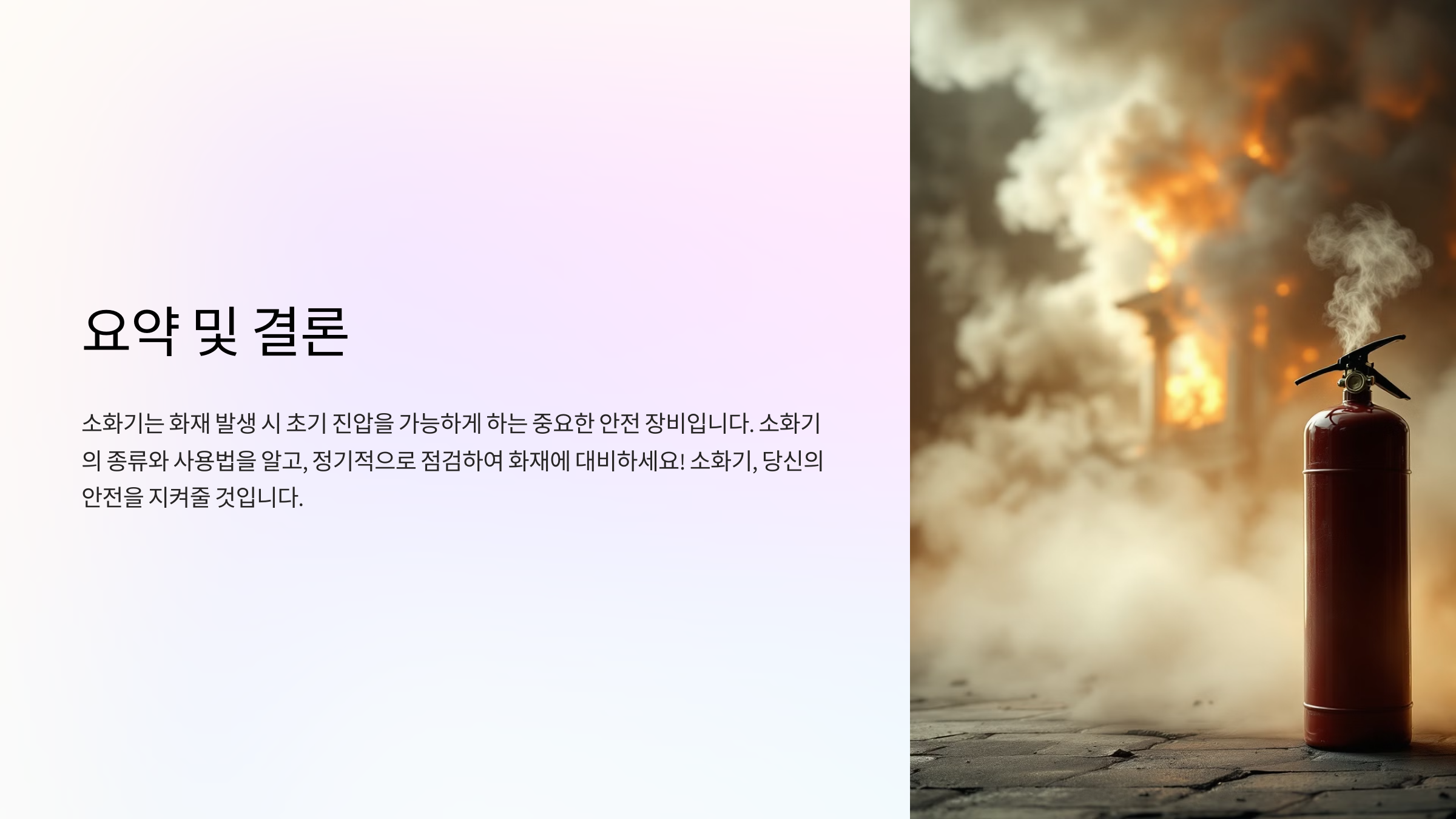 소화기는 초기 화재 진압에 강력한 도구지만, 가장 중요한 것은 항상 안전한 대피와 침착한 대응이라는 점을 기억하세요.