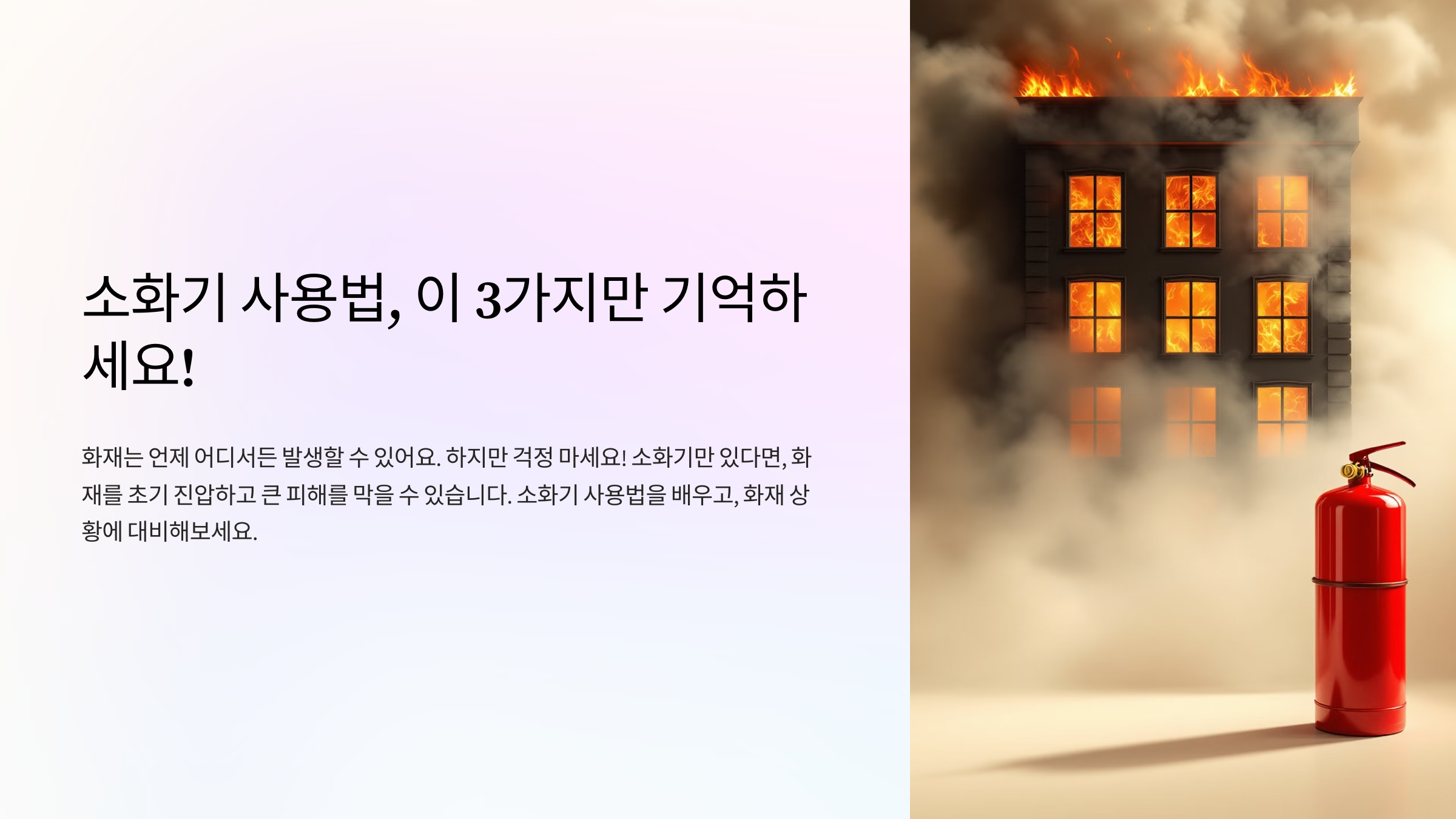 이번 글에서는 누구나 쉽게 기억할 수 있는 ‘소화기 사용법 3가지’를 중심으로 소화기의 중요성부터 관리 방법까지 상세히 설명할게요. 간단한 원칙만 기억해도 위급 상황에서 침착하게 대응할 수 있답니다.