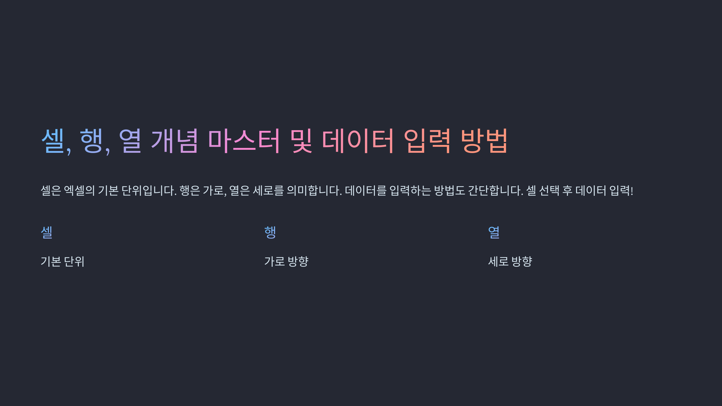 셀, 행, 열 개념과 데이터 입력 방법 📑