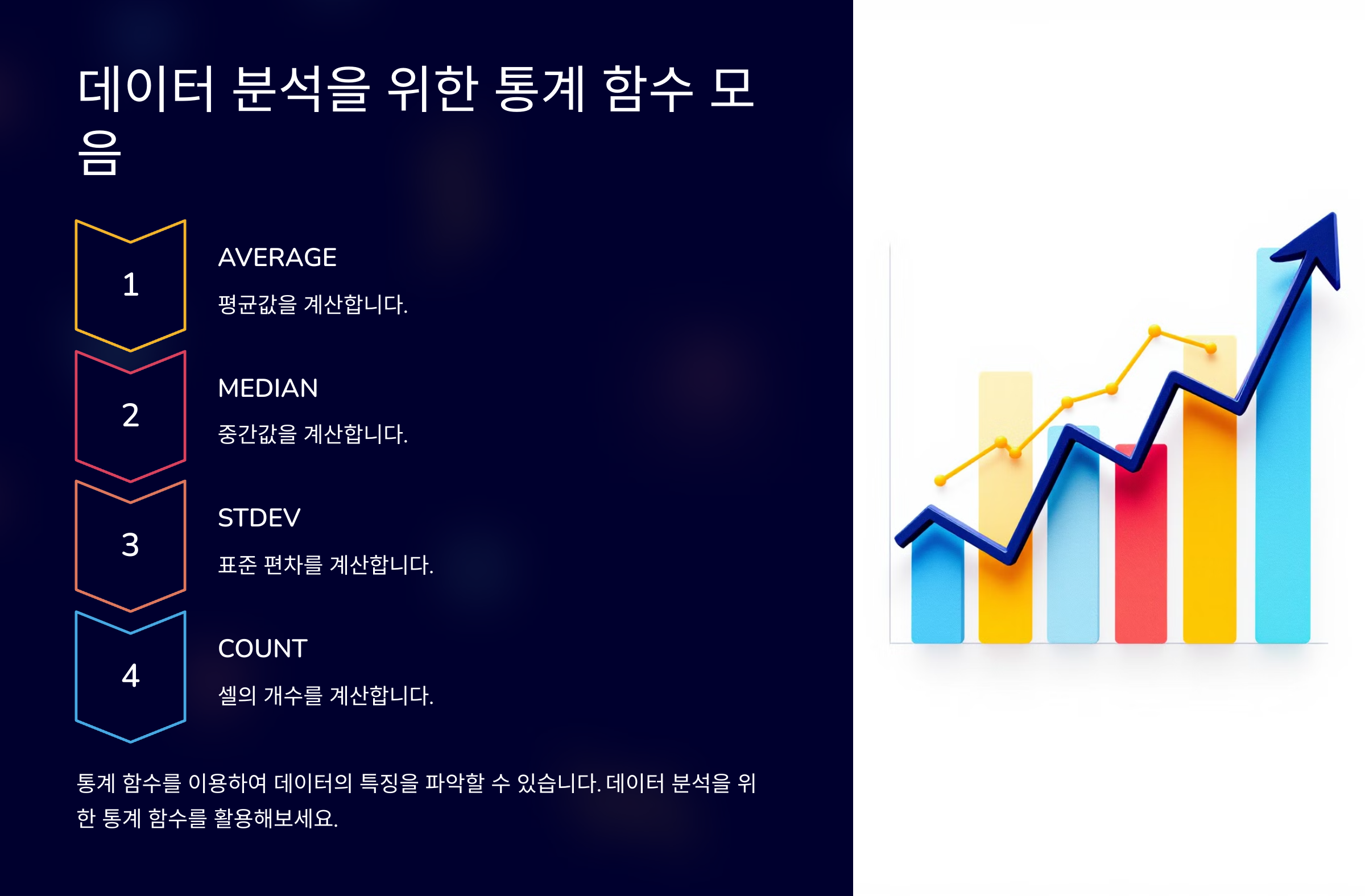 엑셀에서 데이터 분석을 할 때 통계 함수는 필수예요! 📊 평균, 중앙값, 최빈값 등 기본적인 통계 함수를 익히면 데이터를 빠르게 분석할 수 있어요.