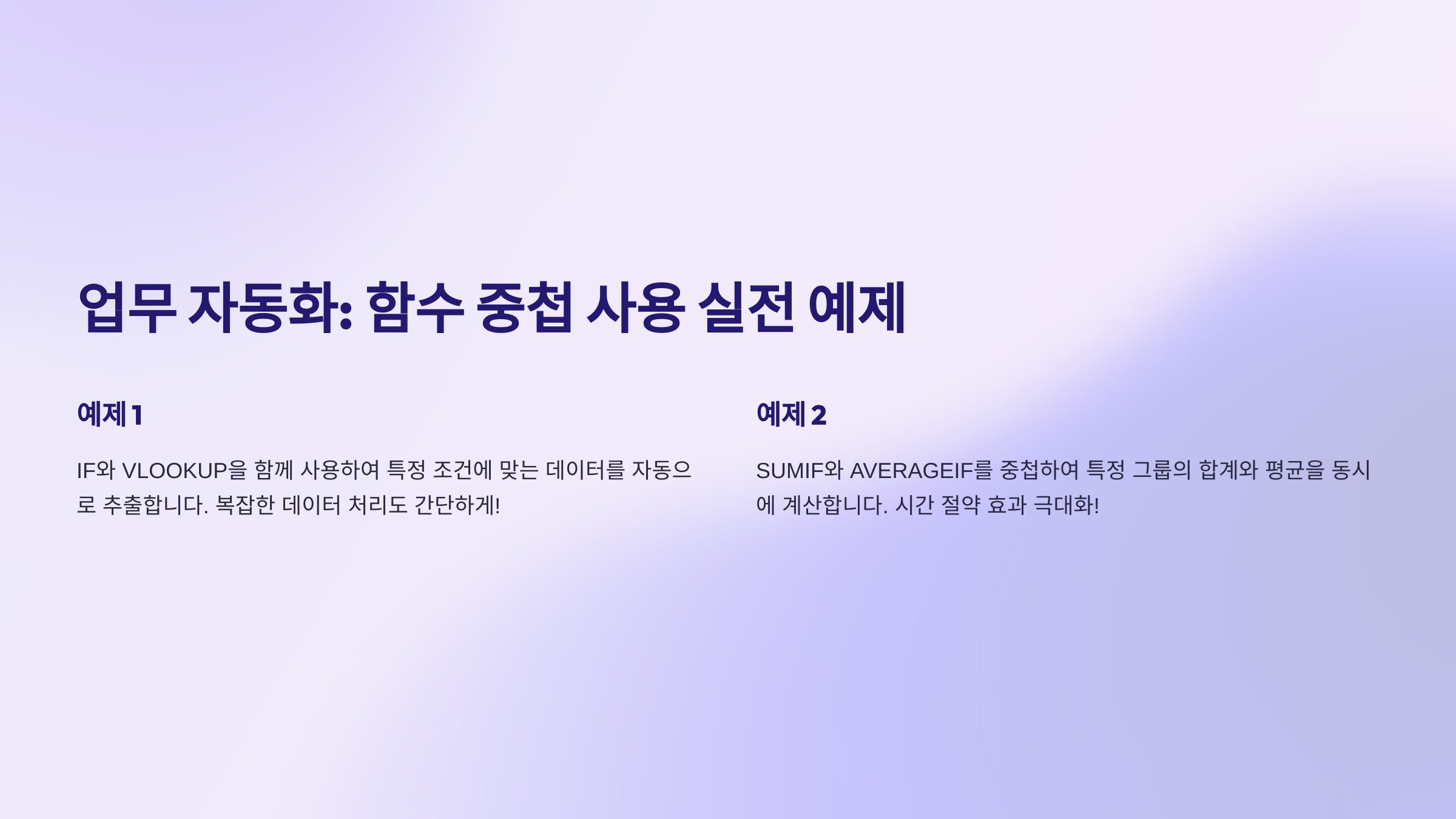 기본 함수에 익숙해졌다면, 이제 데이터를 더욱 효율적으로 다룰 수 있는 중급 함수들을 익혀야 해요. 이 함수들은 대량의 데이터를 분석하고, 특정 조건에 맞는 데이터를 쉽게 찾을 수 있도록 도와줘요! 🔍