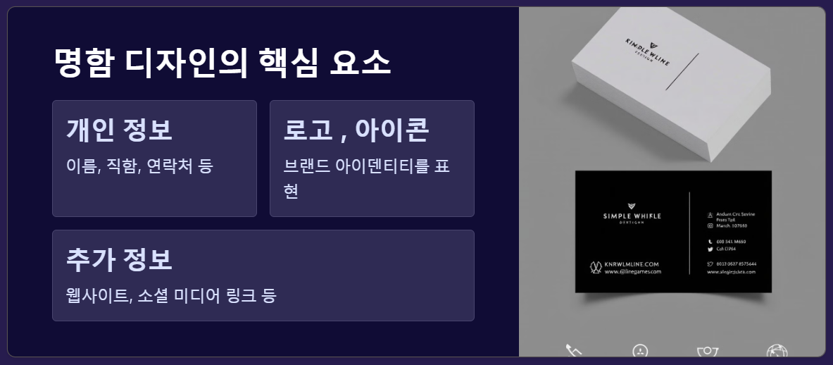 명함 디자인의 핵심 요소는 시각적 균형과 정보 전달이에요.