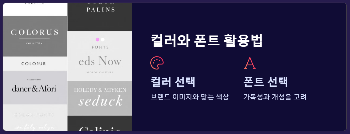 컬러와 폰트는 명함의 분위기와 브랜드 이미지를 표현하는 중요한 수단이예요. 유명 브랜드는 브랜드 컬러를 일관되게 사용해 강력한 아이덴티티를 구축하고 있어요.