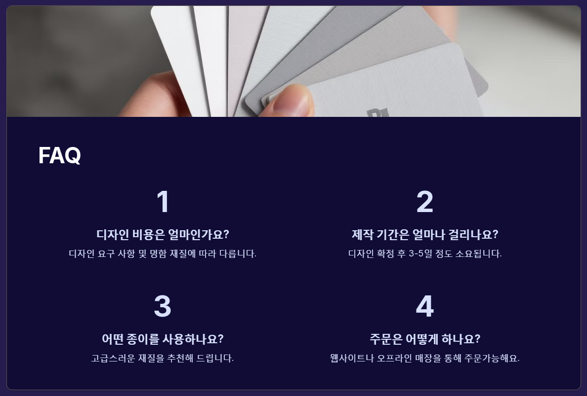 | 고급 명함 제작 - 프로페셔널 디자인, 성공의 첫걸음 (0) | 2025.01.07 |