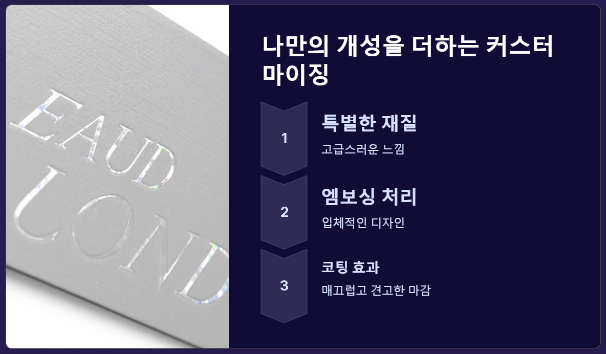 명함에 개인의 개성을 더하면 브랜드 이미지가 더 강하게 각인될 수 있어요. 차별화된 커스터마이징 방법을 살펴볼게요.