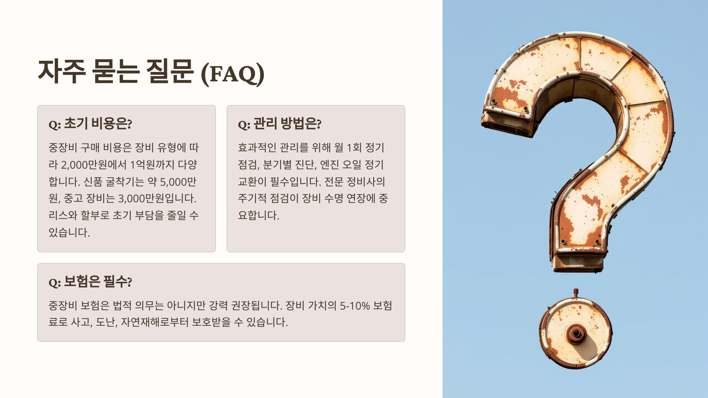 중장비 관련 자주 묻는 질문 (FAQ)