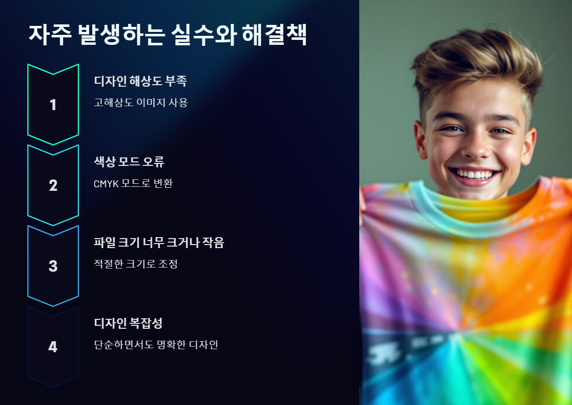 디자인 요소가 티셔츠의 인쇄 가능한 영역을 벗어나는 경우도 있어요. 이 문제는 작업 전 인쇄사가 제공하는 템플릿을 활용해 영역을 정확히 설정하면 해결할 수 있어요.