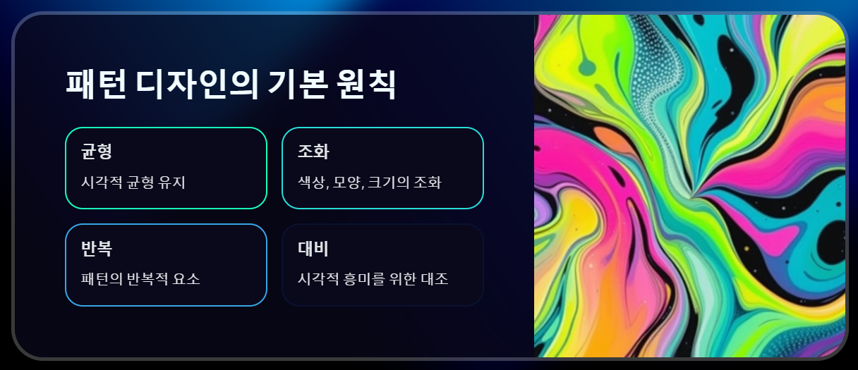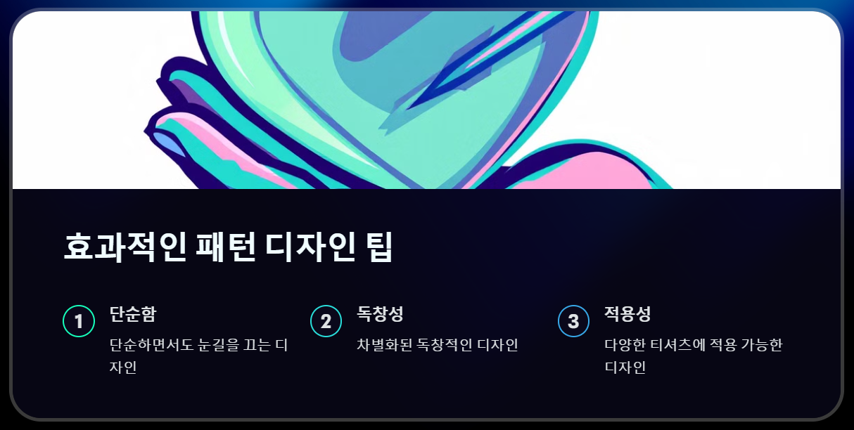 패턴 디자인은 시각적으로 조화롭고 티셔츠라는 평면적 소재 위에서 잘 작동해야 해요. 가장 기본적인 원칙은 디자인의 용도와 타깃 고객을 명확히 이해하는 거예요. 예를 들어, 스포츠 팀을 위한 디자인과 캐주얼 패션 디자인은 전혀 다른 느낌과 요소가 필요하죠.
