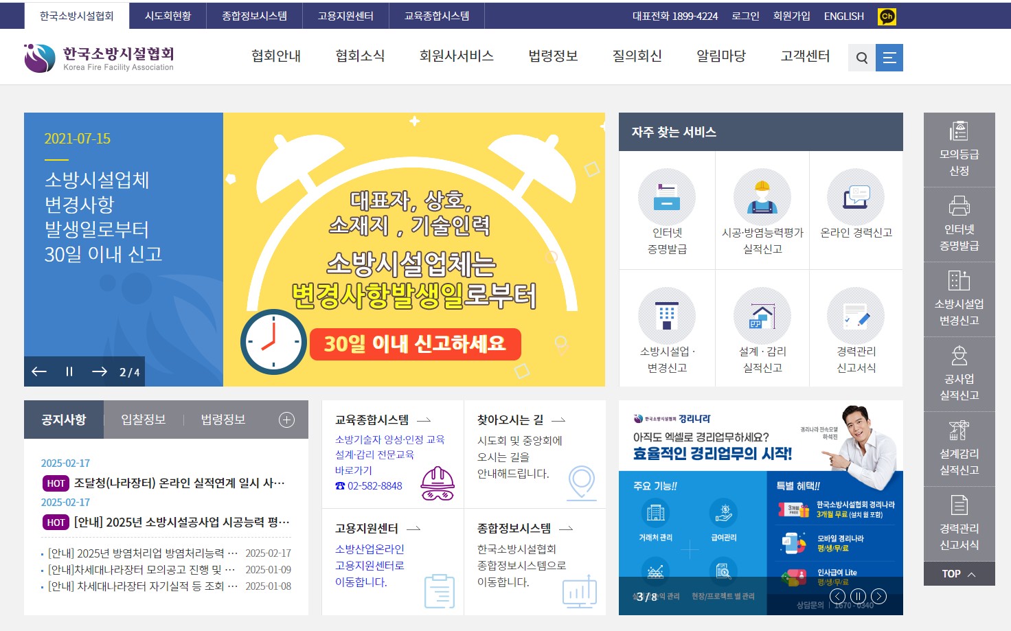- 법령정보 제공: 소방시설업과 관련된 최신 법령정보를 제공하여 회원사와 기술자들이 최신 정보를 습득할 수 있도록 지원하고 있습니다.