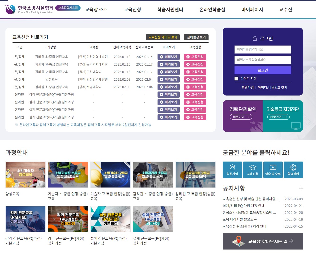 한국소방시설협회 교육종합시스템