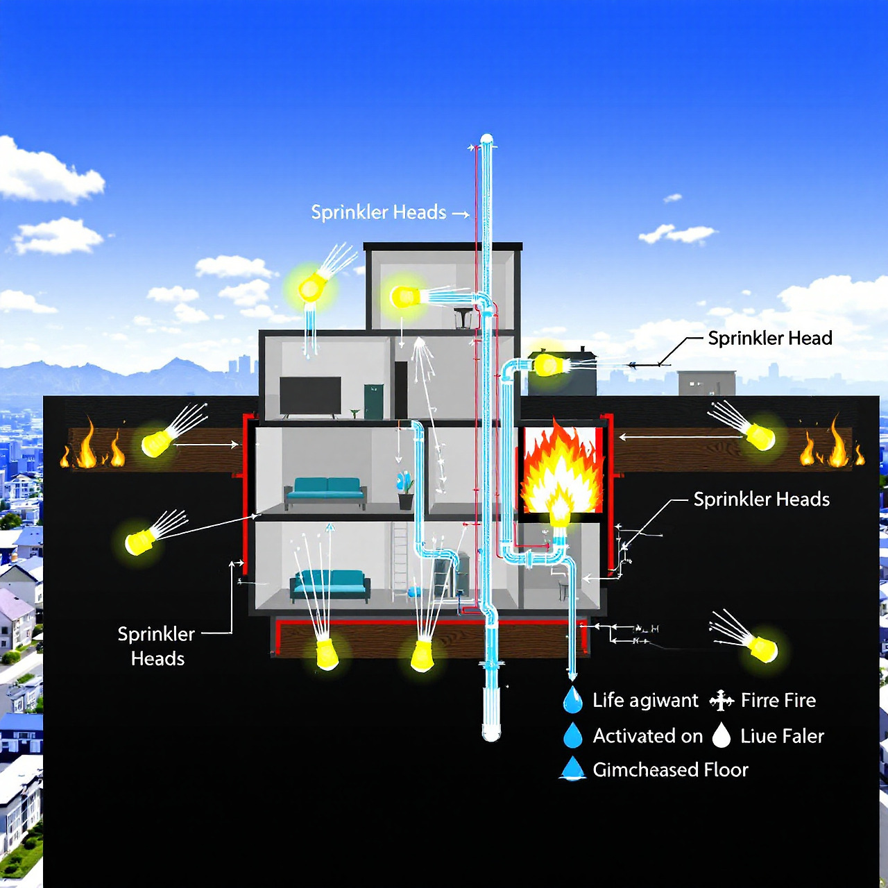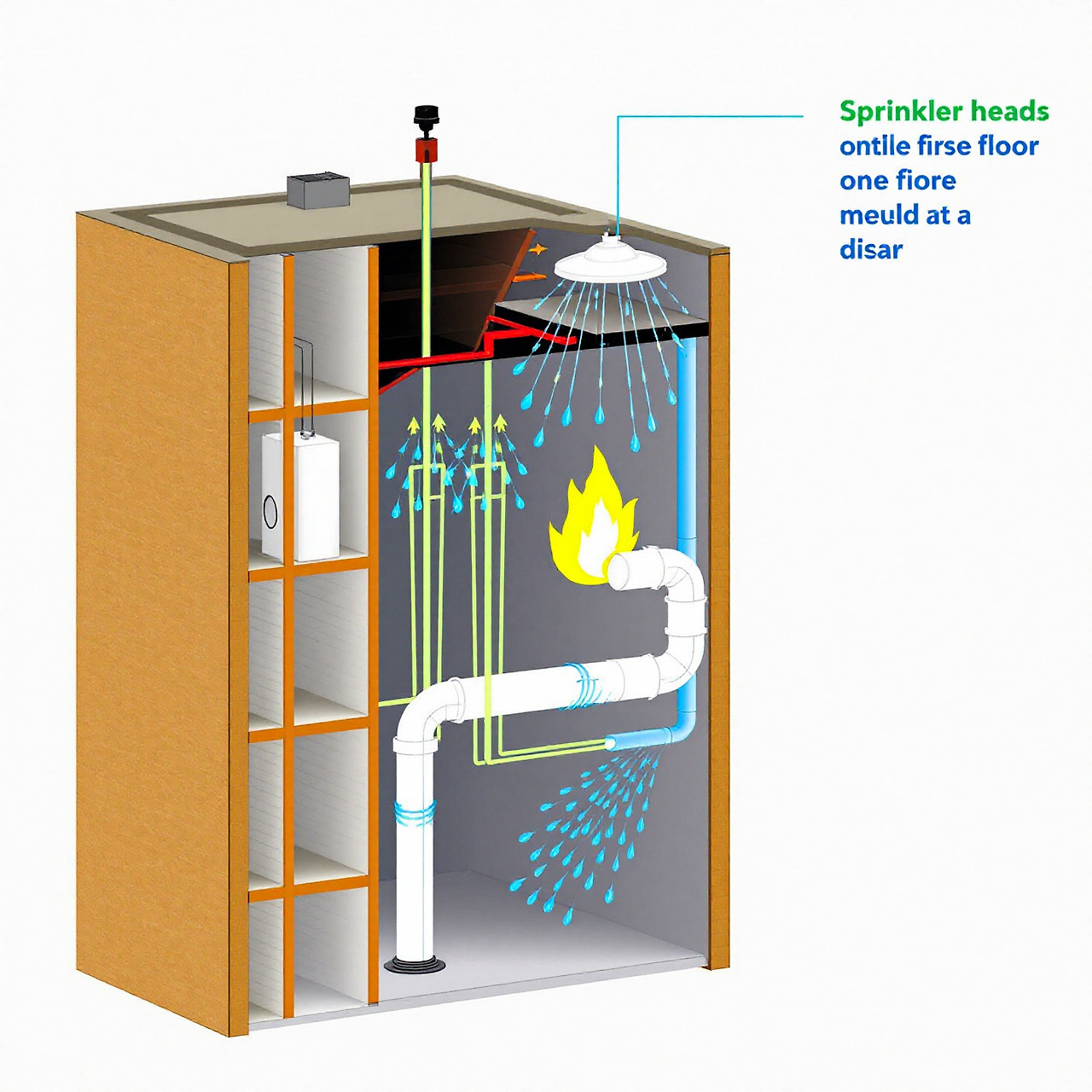 스프링클러는 화재 발생 시 일정 온도에 도달하면 자동으로 물을 분사하여 화재를 진압하거나 확산을 지연시키는 장치예요. 스프링클러는 화재를 초기에 억제하여 대형 사고로 이어지지 않도록 막는 데 매우 효과적입니다.