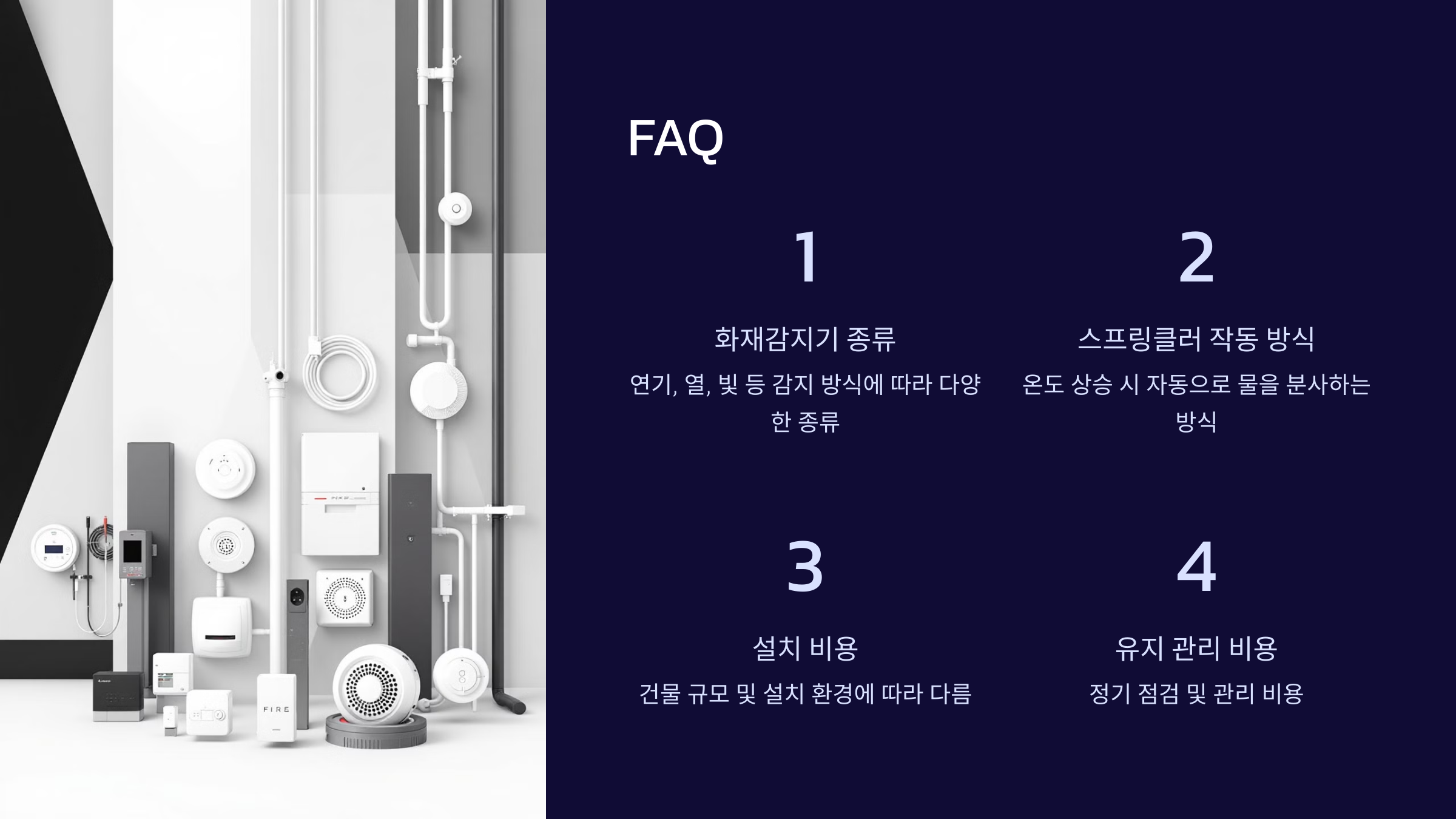 A1. 네, 국내 소방시설법에 따라 일정 규모 이상의 건물에서는 화재감지기와 스프링클러 설치가 의무화되어 있어요. 연면적 500㎡ 이상의 건물, 지하층이 있는 시설, 다중이용시설 등은 반드시 이 두 시스템을 설치해야 합니다.