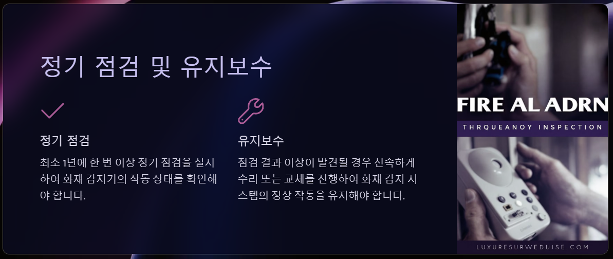 화재감지기의 성능 유지를 위해 정기적인 점검과 유지보수가 필요해요. 소방청에서는 최소 6개월마다 전문 업체의 점검을 권장하고 있어요. 이는 오작동이나 노후화를 조기에 발견하기 위함이에요.