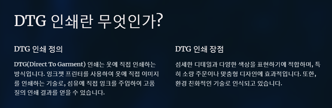 DTF와 DTG 인쇄는 각각의 강점을 지닌 기술이에요. 필요에 따라 적절한 방식을 선택하면 높은 품질과 만족도를 얻을 수 있답니다.